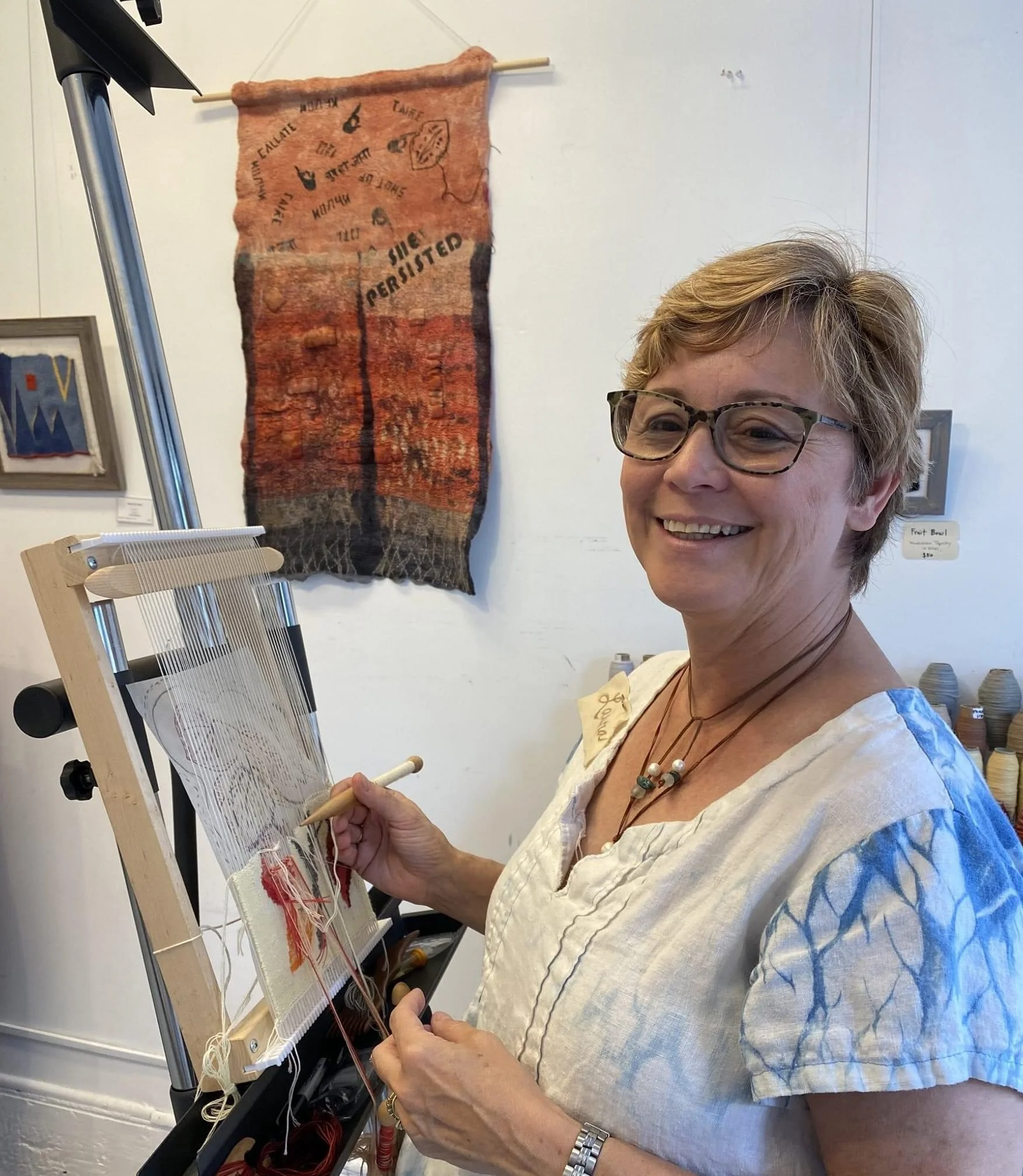 But it has been fantastic for my creativity and inspiration. I finally finished my tapestry about the Women’s March in 2016 and did a small tapestry of fall leaves. Right now I’m working on a tapestry depicting dimension. Stay tuned for lots of updates here!